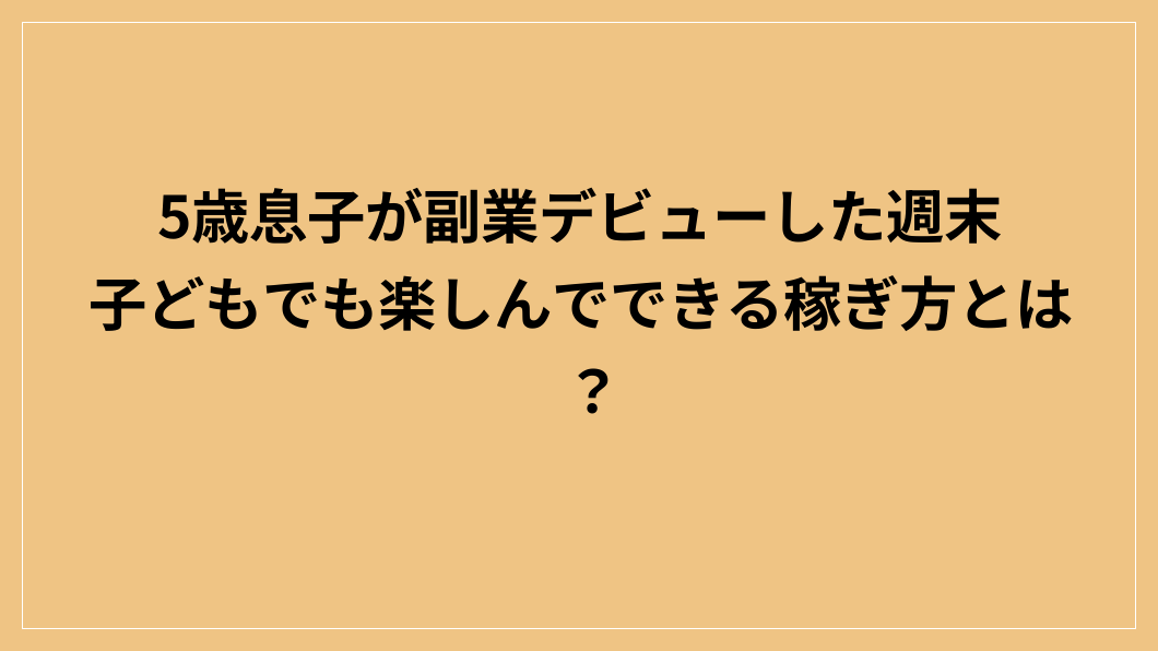 5歳息子が副業デビューした週末|子どもでも楽しんでできる稼ぎ方とは?