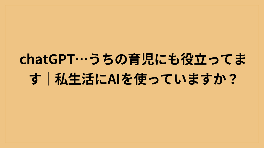 chatGPT…うちの育児にも役立ってます|私生活にAIを使っていますか?