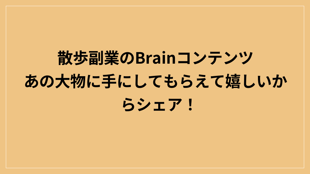 散歩副業のBrainコンテンツ、あの大物に手にしてもらえて嬉しいからシェア!